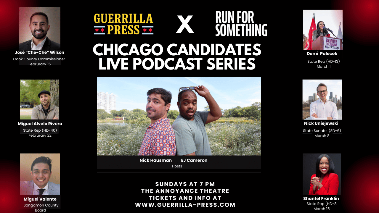 Guerrilla Press will welcome Chicago-area Run For Something-endorsed candidates to The Annoyance Theatre in the closing five weeks of the primary season