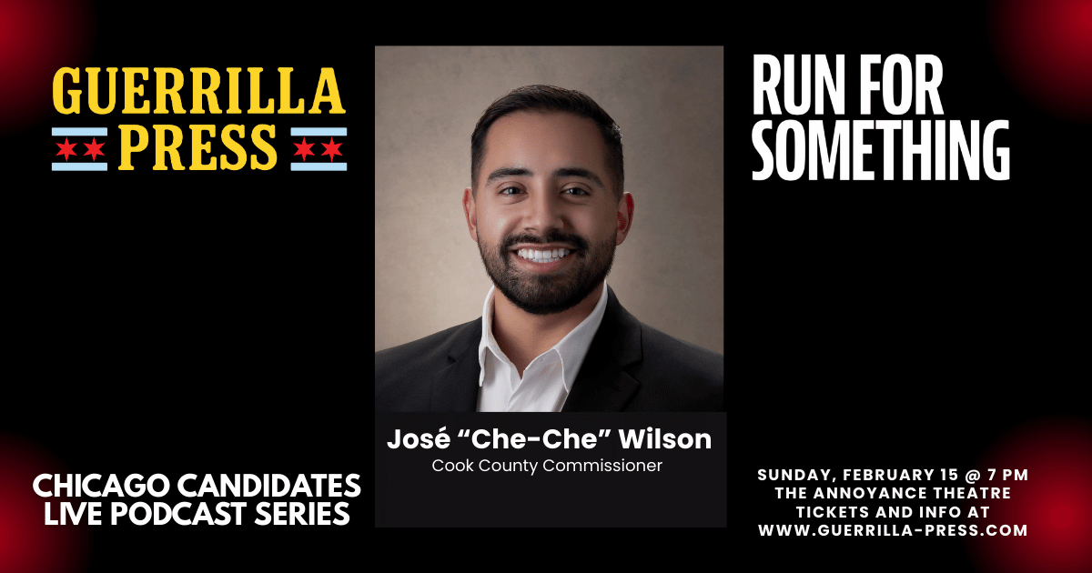 The first young, progressive candidate to join comedians and hosts EJ Cameron and Nick Hausman on stage will be Director of Civic Engagement for Equality Illinois and Cook County Commissioner candidate, José “Che-Che” Wilson.