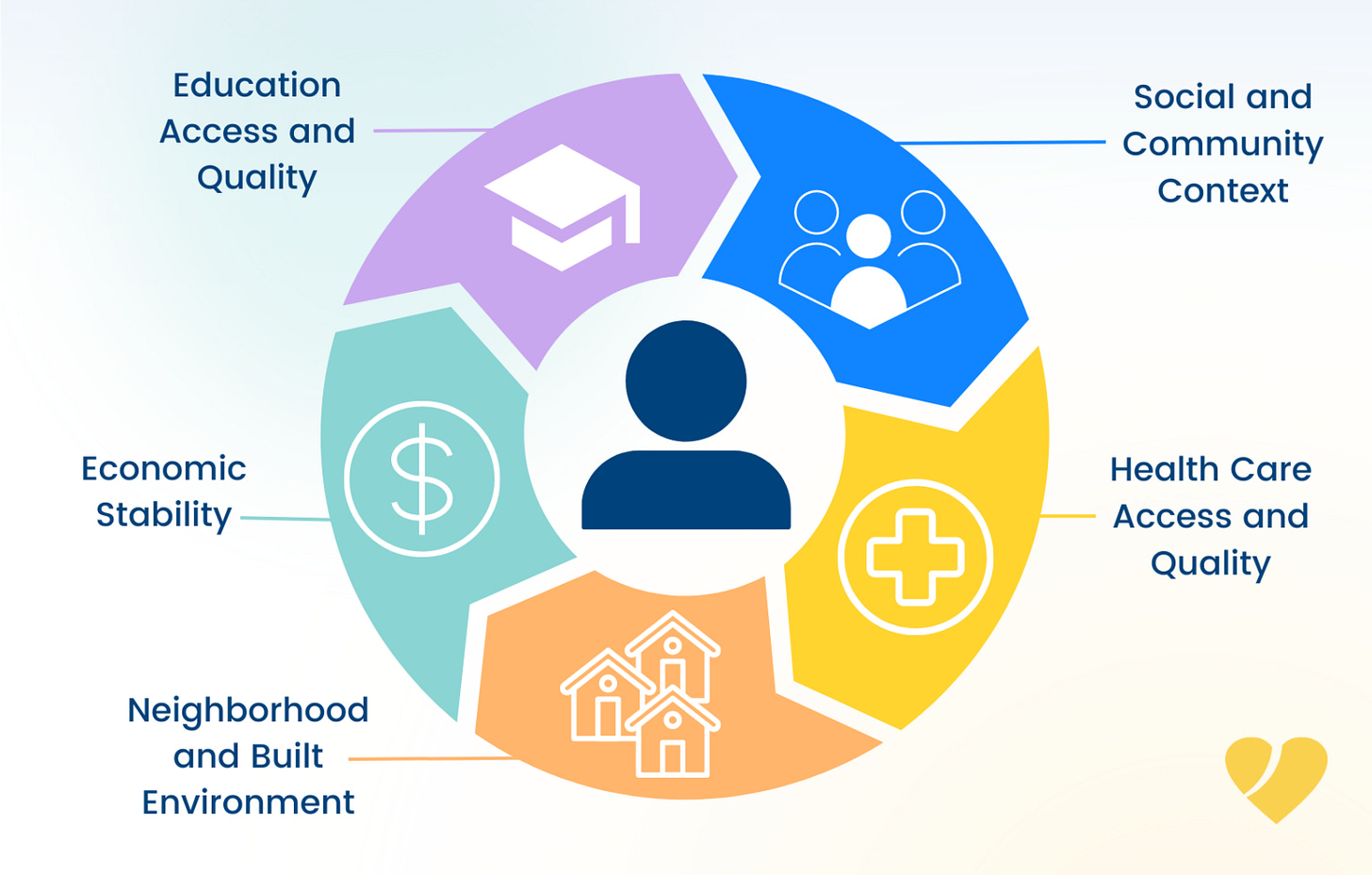 Social Determinants of Health are the conditions in which people are born, grow, live, and age. These determinants are shaped by the distribution of money, power, and resources, oftentimes benefiting a small percentage of those at the top of the financial chain, with negative downstream consequences.